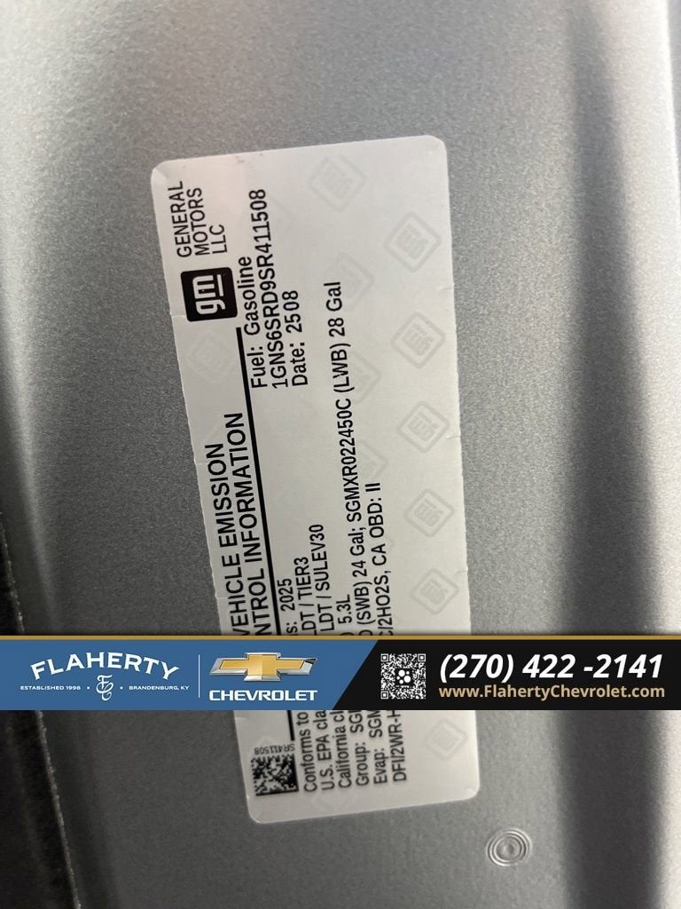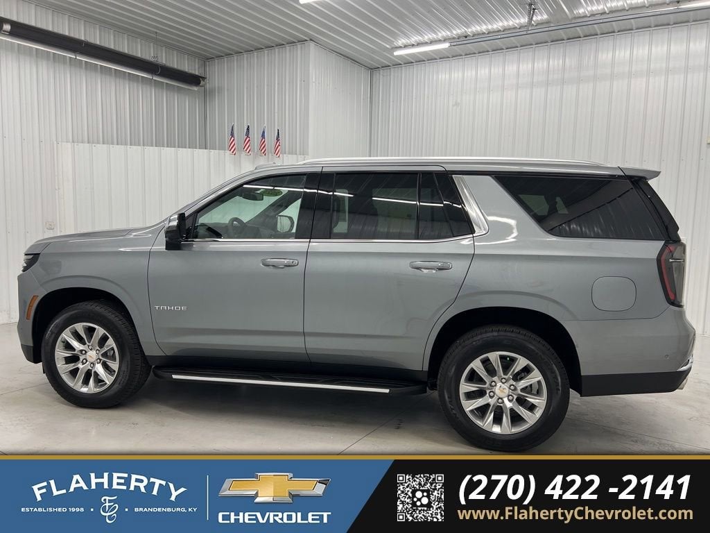 Sterling Gray Metallic 2025 Chevrolet Tahoe Premier 4WD 10-Speed Automatic with Overdrive EcoTec3 5.3L V8 4WD, Black Leather.