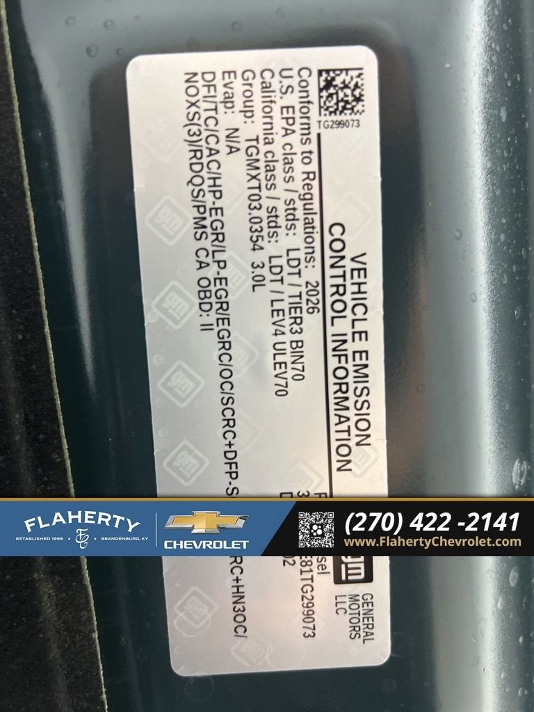 Cypress Gray 2026 Chevrolet Silverado 1500 Custom Trail Boss 4WD 10-Speed Automatic 3.0L I6 10-Speed Automatic, 4WD, Jet Black Cloth.