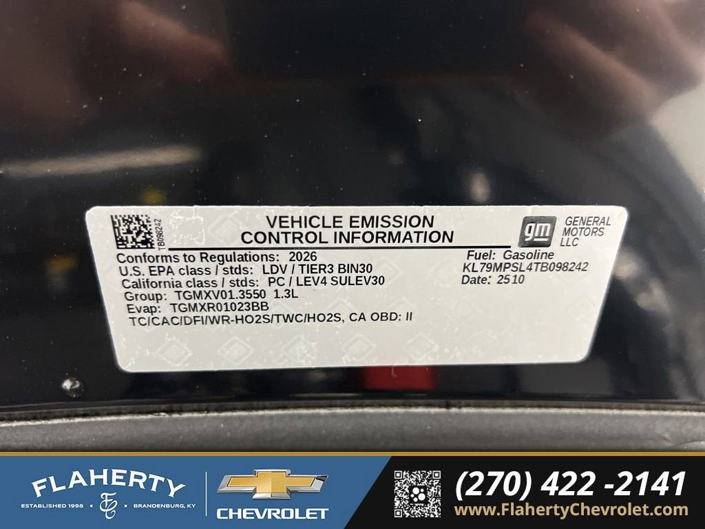 Mosaic Black Metallic 2026 Chevrolet TrailBlazer LT FWD CVT 1.3L I3 Turbocharged DOHC 12V LEV3-SULEV30 137hp