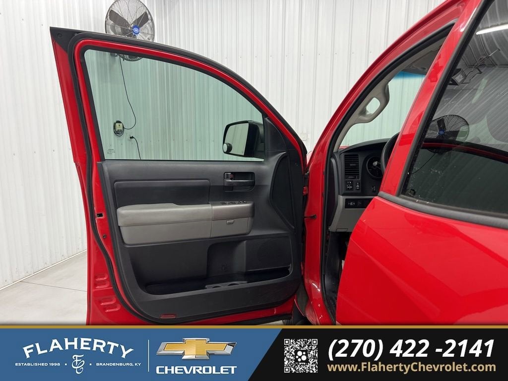 Recent Arrival! CARFAX One-Owner. Clean CARFAX.Red 2012 Toyota Tundra Grade 4.6L V8 RWD 6-Speed Automatic Electronic with Overdrive 4.6L V8 DOHC 32V VVT-iSand Beige Cloth.Odometer is 36201 miles below market average!Home of the Powertrain Advantage Program, Flaherty Chevrolet in Brandenburg, KY is your trusted Chevrolet dealer. Serving drivers across Louisville, Mt. Washington, Elizabethtown, Glendale, Radcliff, Corydon, Bardstown, Lexington, Owensboro, Bowling Green, Cincinnati, Indianapolis, and Nashville. For over 50 years, our family-owned Chevrolet dealership has been helping car buyers find the perfect vehicle, whether you’re shopping for a new Chevrolet or a dependable selection of used cars, trucks, and SUVs. Backed by a 4.8/5 customer satisfaction rating, we’re also home to a full Chevrolet service center, certified auto repair, genuine Chevrolet parts, and flexible auto financing. Conveniently located between four major cities, Flaherty Chevrolet makes it easy for Kentucky, Indiana, Ohio, and Tennessee drivers to shop for new Chevrolets, quality used cars, and expert Chevrolet service all in one place.Awards:* 2012 IIHS Top Safety Pick * 2012 KBB.com Best Resale Value AwardsReviews:* If you need a tough and rugged truck that knows how to pamper its occupants, the 2012 Toyota Tundra is worth checking out. With the right configuration, the Tundra’s payload exceeds one ton and towing capacity can go to 10,400 pounds. Source: KBB.com
