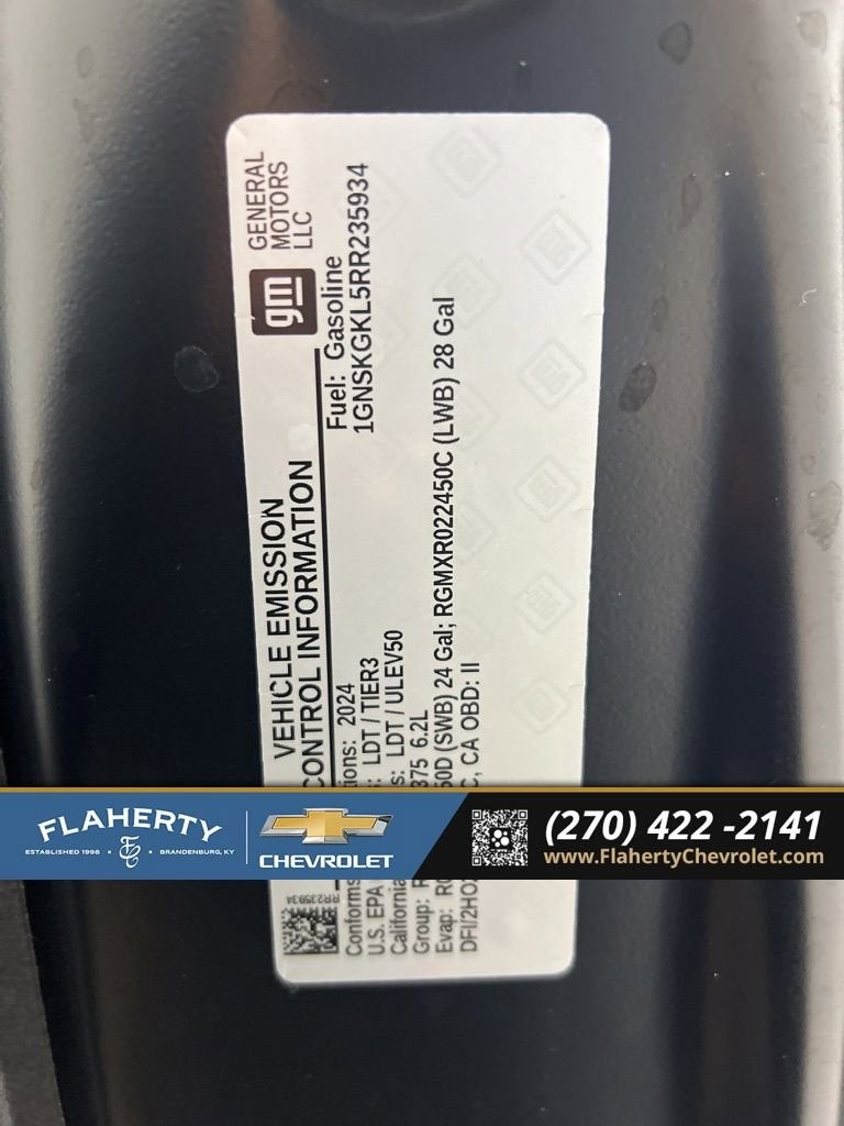 CARFAX One-Owner. Clean CARFAX.Black 2024 Chevrolet Suburban High Country 4WD 10-Speed Automatic with Overdrive EcoTec3 6.2L V8Odometer is 17133 miles below market average!Home of the Powertrain Advantage Program, Flaherty Chevrolet in Brandenburg, KY is your trusted Chevrolet dealer. Serving drivers across Louisville, Mt. Washington, Elizabethtown, Glendale, Radcliff, Corydon, Bardstown, Lexington, Owensboro, Bowling Green, Cincinnati, Indianapolis, and Nashville. For over 50 years, our family-owned Chevrolet dealership has been helping car buyers find the perfect vehicle, whether you’re shopping for a new Chevrolet or a dependable selection of used cars, trucks, and SUVs. Backed by a 4.8/5 customer satisfaction rating, we’re also home to a full Chevrolet service center, certified auto repair, genuine Chevrolet parts, and flexible auto financing. Conveniently located between four major cities, Flaherty Chevrolet makes it easy for Kentucky, Indiana, Ohio, and Tennessee drivers to shop for new Chevrolets, quality used cars, and expert Chevrolet service all in one place.