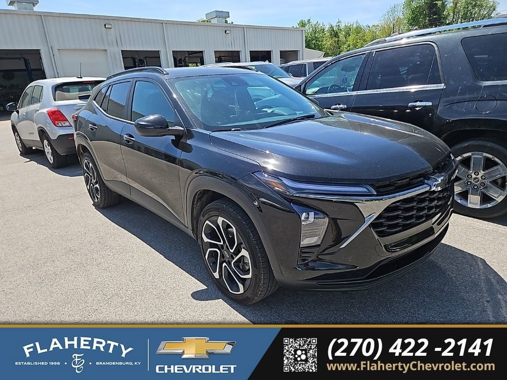 Recent Arrival! CARFAX One-Owner.Mosaic Black Metallic 2024 Chevrolet Trax 2RS FWD 6-Speed Automatic 1.2L Ecotec Turbo DOHC DI w/VVT28/32 City/Highway MPGHome of the Powertrain Advantage Program, Flaherty Chevrolet in Brandenburg, KY is your trusted Chevrolet dealer. Serving drivers across Louisville, Mt. Washington, Elizabethtown, Glendale, Radcliff, Corydon, Bardstown, Lexington, Owensboro, Bowling Green, Cincinnati, Indianapolis, and Nashville. For over 50 years, our family-owned Chevrolet dealership has been helping car buyers find the perfect vehicle, whether you’re shopping for a new Chevrolet or a dependable selection of used cars, trucks, and SUVs. Backed by a 4.8/5 customer satisfaction rating, we’re also home to a full Chevrolet service center, certified auto repair, genuine Chevrolet parts, and flexible auto financing. Conveniently located between four major cities, Flaherty Chevrolet makes it easy for Kentucky, Indiana, Ohio, and Tennessee drivers to shop for new Chevrolets, quality used cars, and expert Chevrolet service all in one place.Awards:* Car and Driver 10 BestCar and Driver, January 2017.