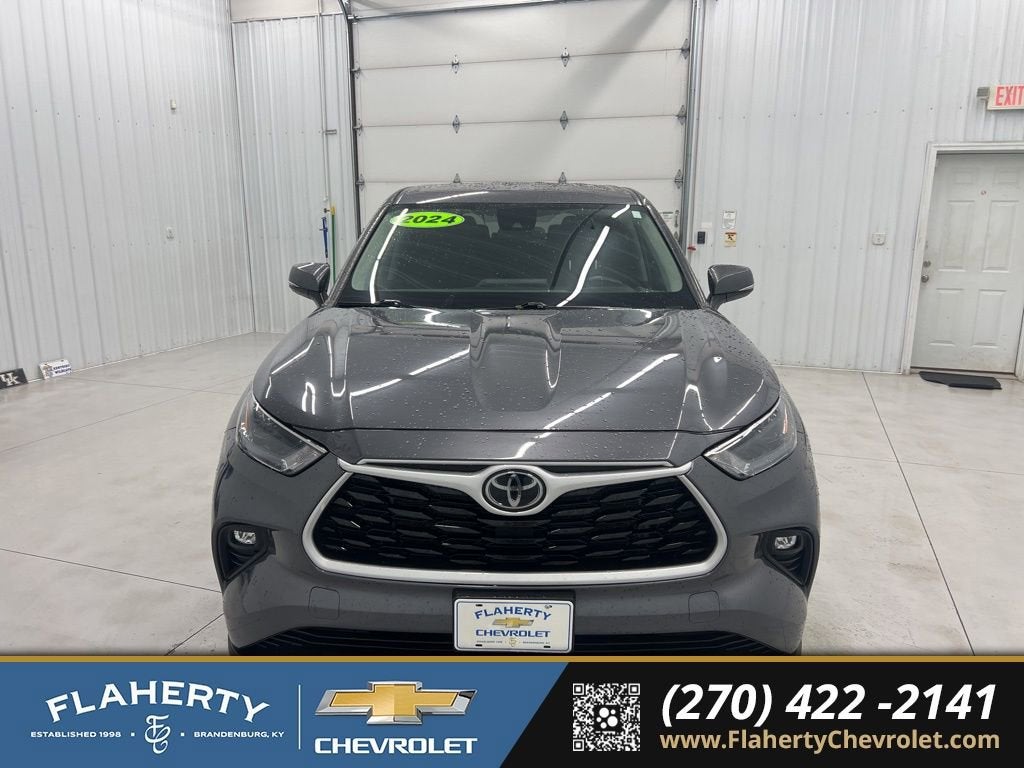 Recent Arrival! CARFAX One-Owner. Clean CARFAX.Gray 2024 Toyota Highlander LE AWD 8-Speed Automatic 2.4L I4 PDI Turbocharged DOHC 16V LEV3-SULEV30 265hpAWD.21/28 City/Highway MPGHome of the Powertrain Advantage Program, Flaherty Chevrolet in Brandenburg, KY is your trusted Chevrolet dealer. Serving drivers across Louisville, Mt. Washington, Elizabethtown, Glendale, Radcliff, Corydon, Bardstown, Lexington, Owensboro, Bowling Green, Cincinnati, Indianapolis, and Nashville. For over 50 years, our family-owned Chevrolet dealership has been helping car buyers find the perfect vehicle, whether you’re shopping for a new Chevrolet or a dependable selection of used cars, trucks, and SUVs. Backed by a 4.8/5 customer satisfaction rating, we’re also home to a full Chevrolet service center, certified auto repair, genuine Chevrolet parts, and flexible auto financing. Conveniently located between four major cities, Flaherty Chevrolet makes it easy for Kentucky, Indiana, Ohio, and Tennessee drivers to shop for new Chevrolets, quality used cars, and expert Chevrolet service all in one place.
